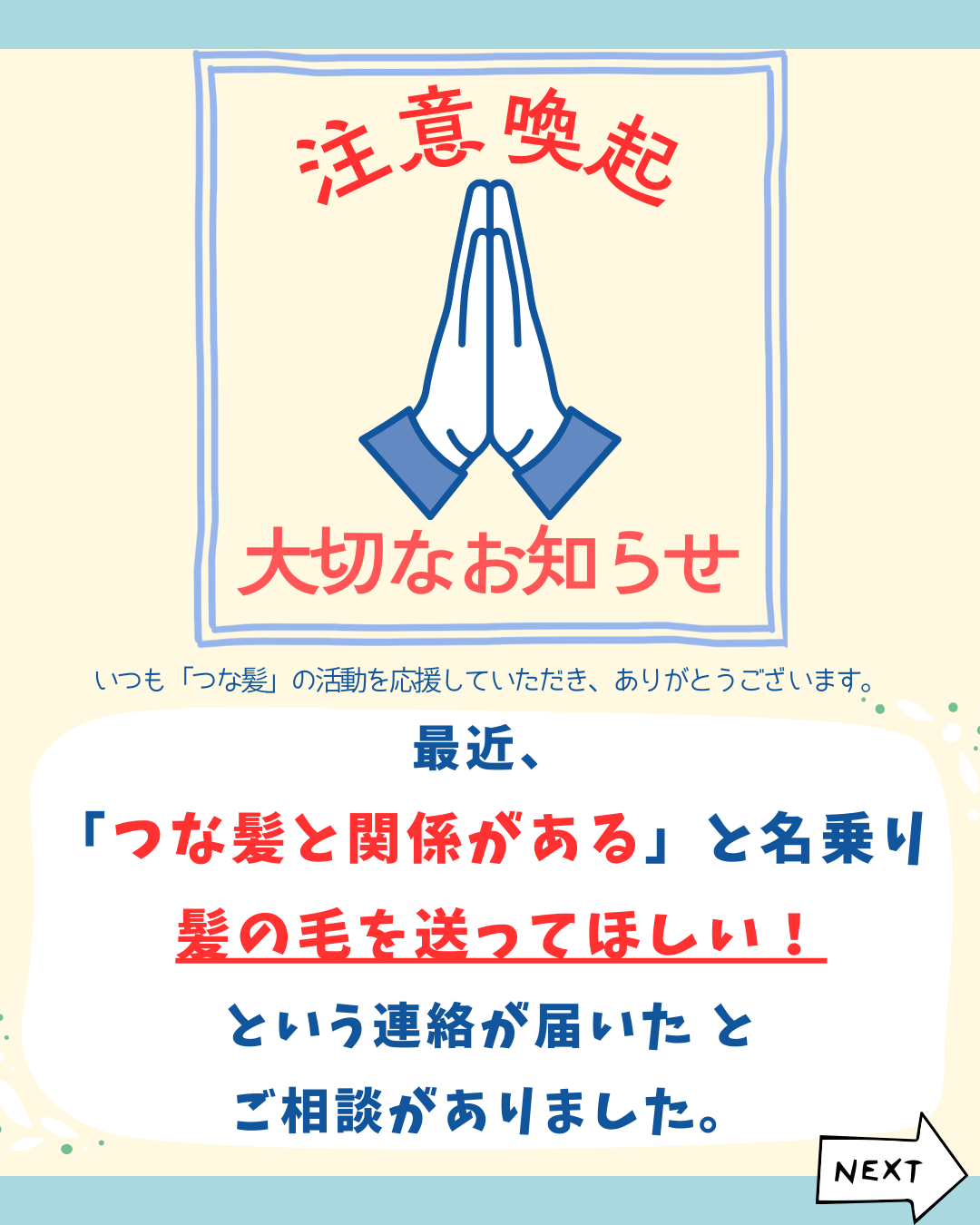 いつも「つな髪」の活動を応援していただき、ありがとうございます。